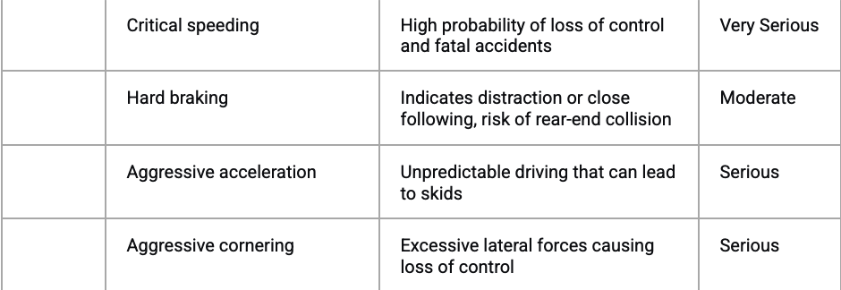- Critical Speeding: Exceeding the road speed limit by more than 30 km/h, based on the actual published limit.