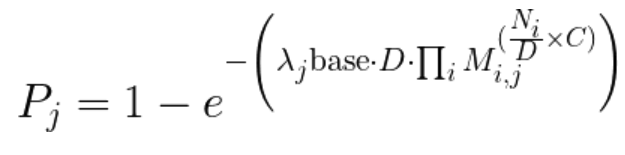 λj base: Base accident rate of type j per kilometer. Represents the inherent risk of an average driver under average conditions