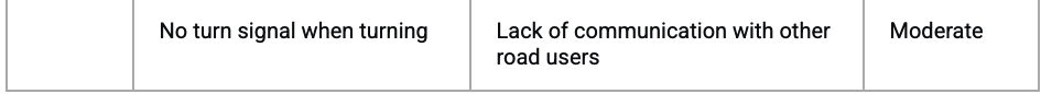 Risk Detected: Lack of communication with other road users (drivers, cyclists, pedestrians).