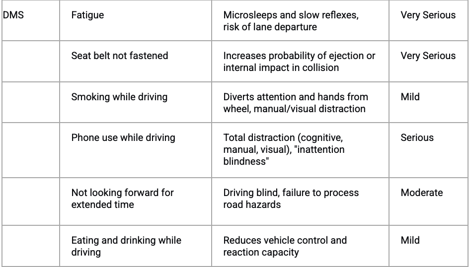 - Distraction: The driver stops looking ahead for prolonged periods.