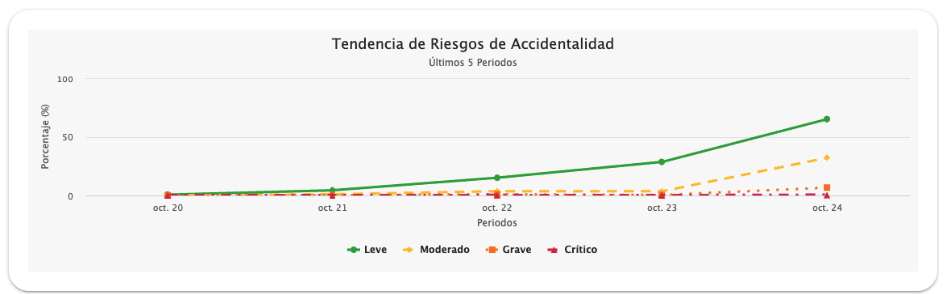 Shows the historical accident risk trends of the driver, comparing the last 5 periods with the current one.